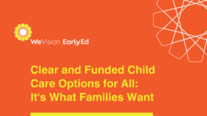 The WeVision EarlyEd initiative is committed to demonstrating that the child- and quality-centered child care system that families and early childhood professionals — what we call “proximity experts” — want is within reach. Public funding and policies must be designed and reengineered to make their ideal real.