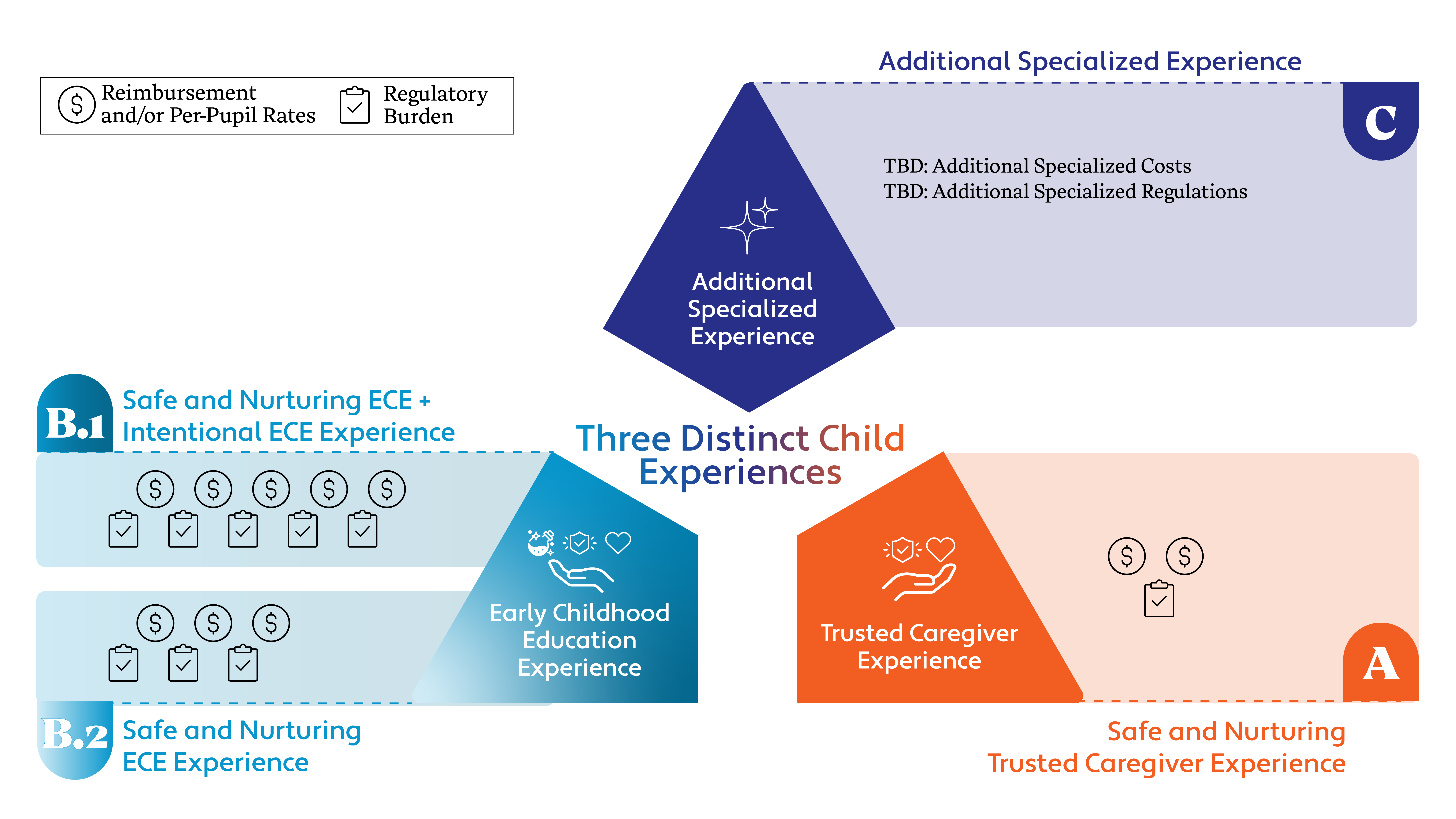 - What if the child care system is designed to deliver three clear and distinct categories of child experiences? What if each category is valued for the distinct child experience it provides?